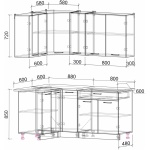 Техническое описание кухни: Общая ширина навесных шкафов: 1600 мм. Общая ширина напольных шкафов: 1600 мм. Высота напольных шкафов с учетом