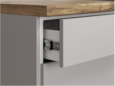 - Ручки — нет (открывание нажатием — механизм Tip-on)