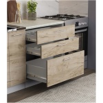 Распашные фасады оснащены петлями с доводчиком. На выдвижных шуфлядах установлены шариковые направляющие полного выката.