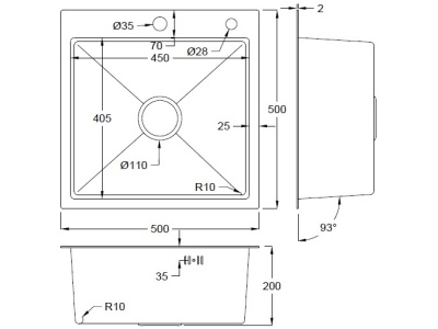 Характеристики: Способ установки — врезная на столешницу Материал — Нержавеющая сталь Поверхность — Матовая Satin Nano Форма мойки — прямоугольная