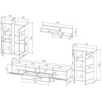 Техническое описание гостиной: Ширина: 230.0 см. Высота: 201.3 см. Глубина: 43.6 см. Максимальный размер под ТВ: Ш-1200 х В-800 (max 52