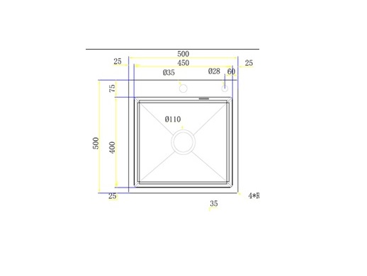 - Форма мойки — прямоугольная