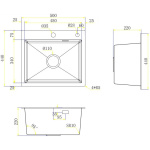 Характеристики: Способ установки — врезная на столешницу Материал — Нержавеющая сталь Поверхность — Матовая PVD Nano Форма мойки — прямоугольная