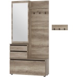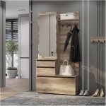 «Энигма» — лучший выбор для небольшой прихожей. Модель оснащена зеркалом, вместительными ящиками для мелочей и аксессуаров, а также просторным отсеком с дверцей для обуви. Верхнюю одежду можно разместить в отдельной зоне. Для головных уборов в прихожей также предусмотрена специальная полка. Ключница в комплекте.