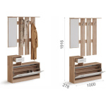 Прихожая включает в себя необходимые модули: вешалка с крючками, вместительная обувница, выдвижной ящик для мелочей, зеркало.