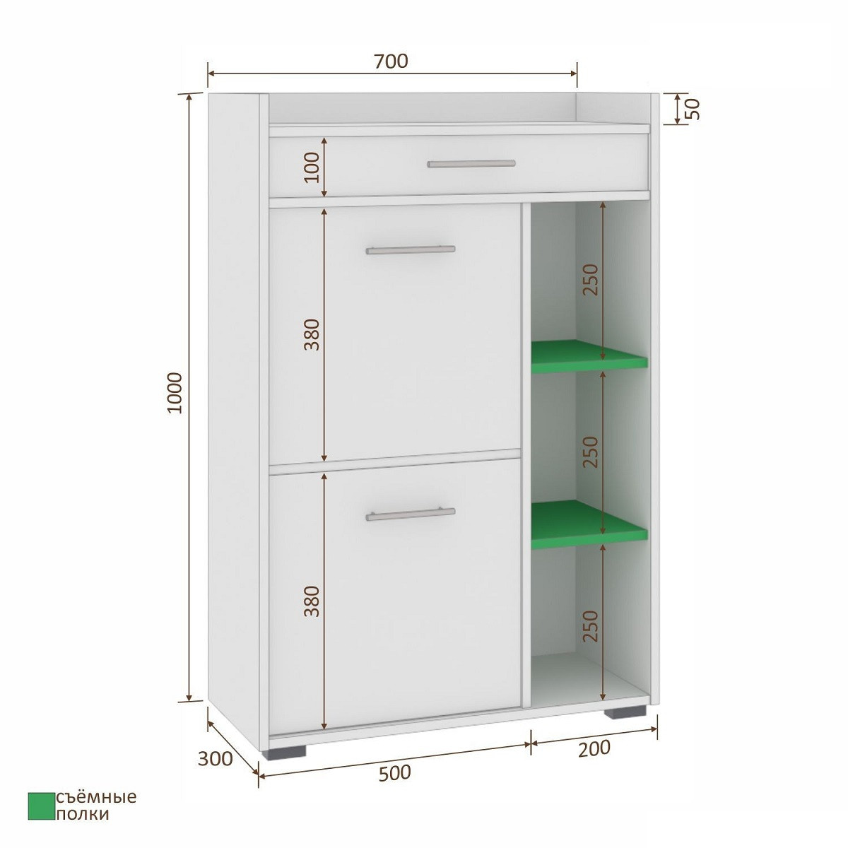 Характеристики: Ширина: 70.0 см. Высота: 100.0 см. Глубина шкафа: 45.0 см. Способ открывания: Откидной. Выдвижные ящики: Есть (направляющие роликовые). Количество