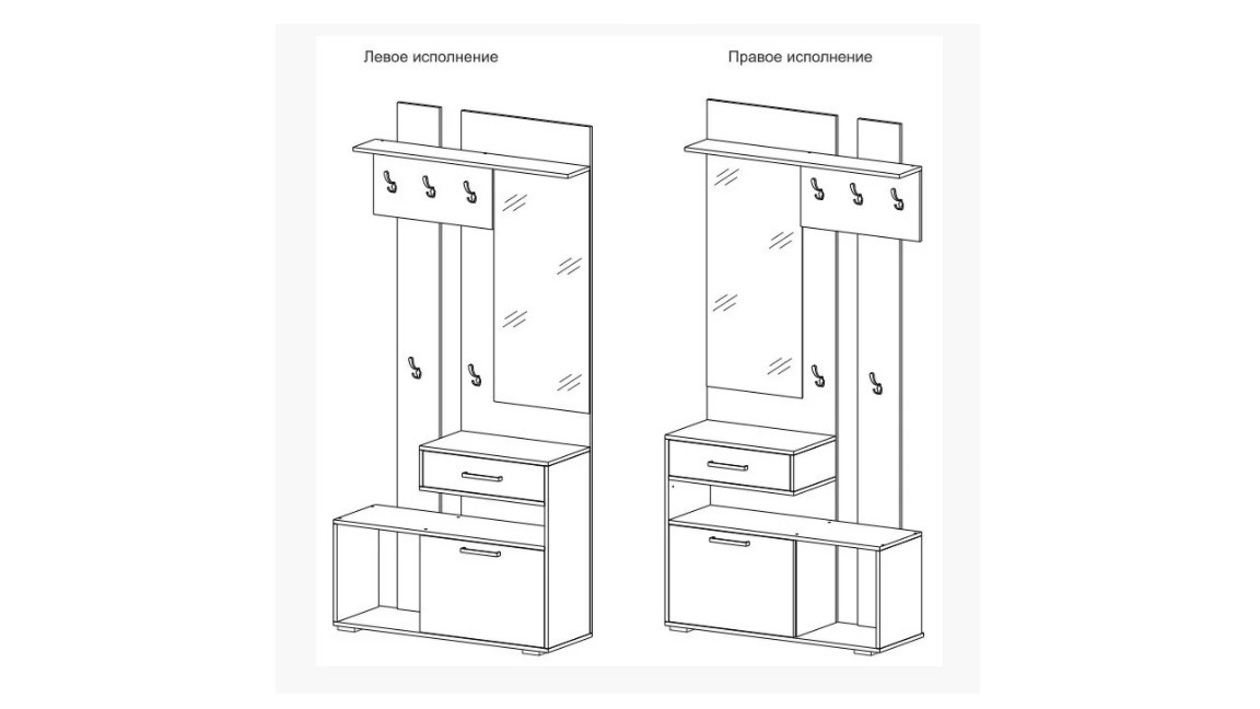 Мебель для прихожей «Смарт-2» собирается как на левую сторону, так и на правую, что позволит Вам максимально удобно разместить ее в прихожей.