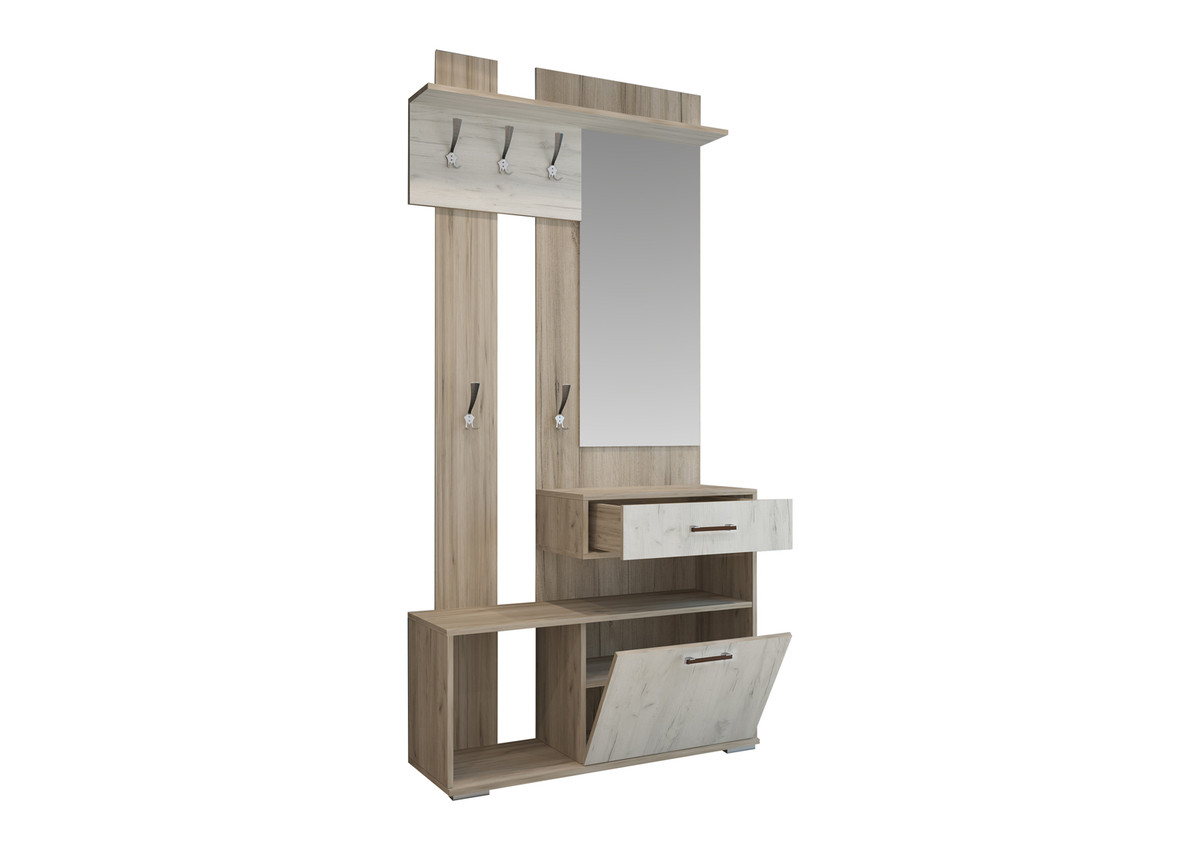 Практичная и стильная прихожая «Смарт-2» – идеальный вариант для современной квартиры или дома. Прихожая «Смарт-2» состоит из тумбы для обуви, выдвижного ящика, открытых полок, крючков для одежды. Большое зеркало так же является значительным плюсом данной модели.