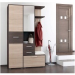 Прихожая «Танго-1» – функциональная и практичная модель, которая подойдет для любой прихожей. Мебель для прихожей включает в себя вместительный платяной шкаф с выдвижной штангой, обувницу, выдвижные ящики для мелочей, открытые полки и вешалки для сезонной одежды. Дверца шкафа оборудована зеркалом.