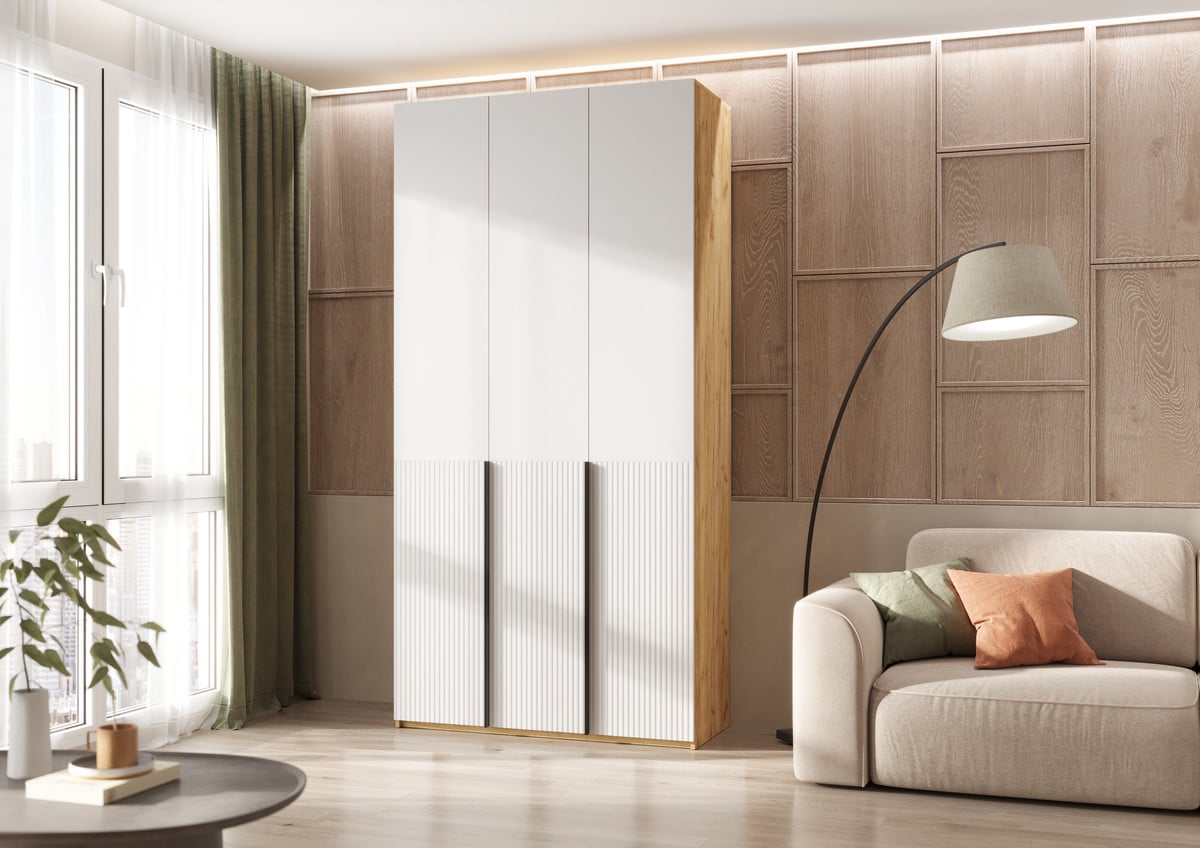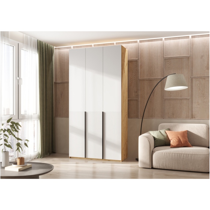 Шкаф трехстворчатый Милан Дуб золотой — Белый матовый