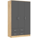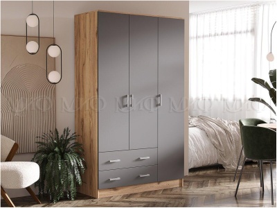 Шкаф 3-х ств. с ящиками Дуб крафт — Графит
