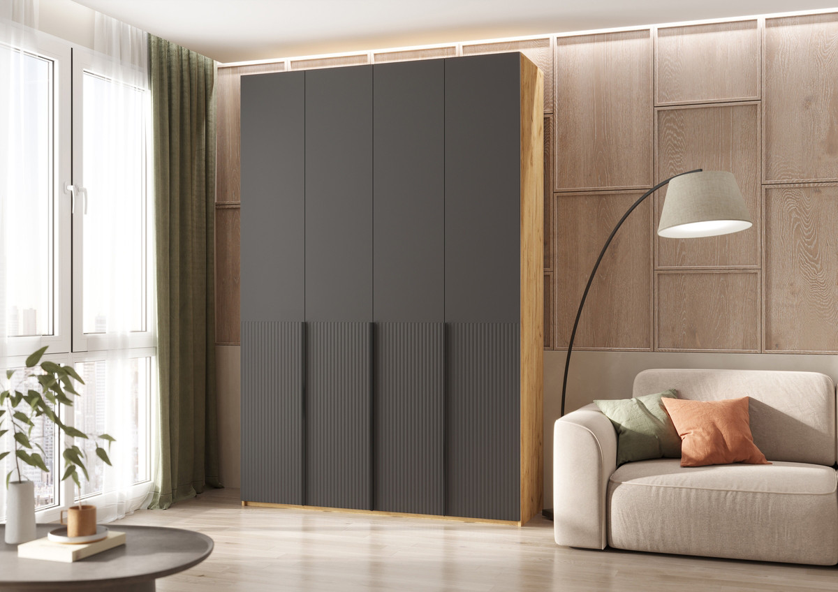 Шкаф 4-х ств. Марвэл Дуб крафт — Браш графит