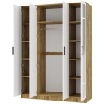Его внутреннее пространство разделено на две части: по бокам находятся прочные полки для удобного хранения различных предметов, а в центре расположена штанга для размещения одежды на плечиках.