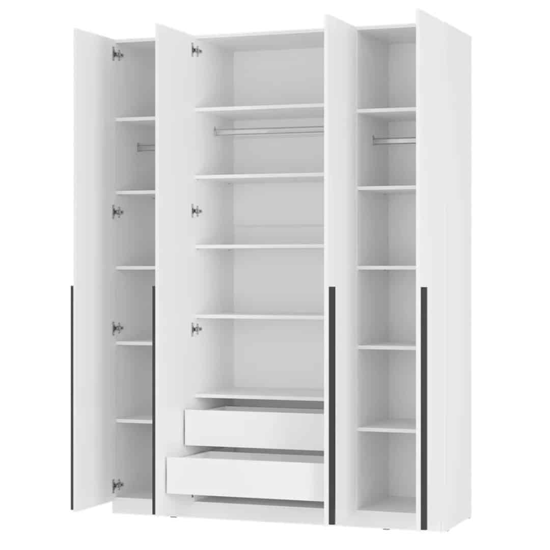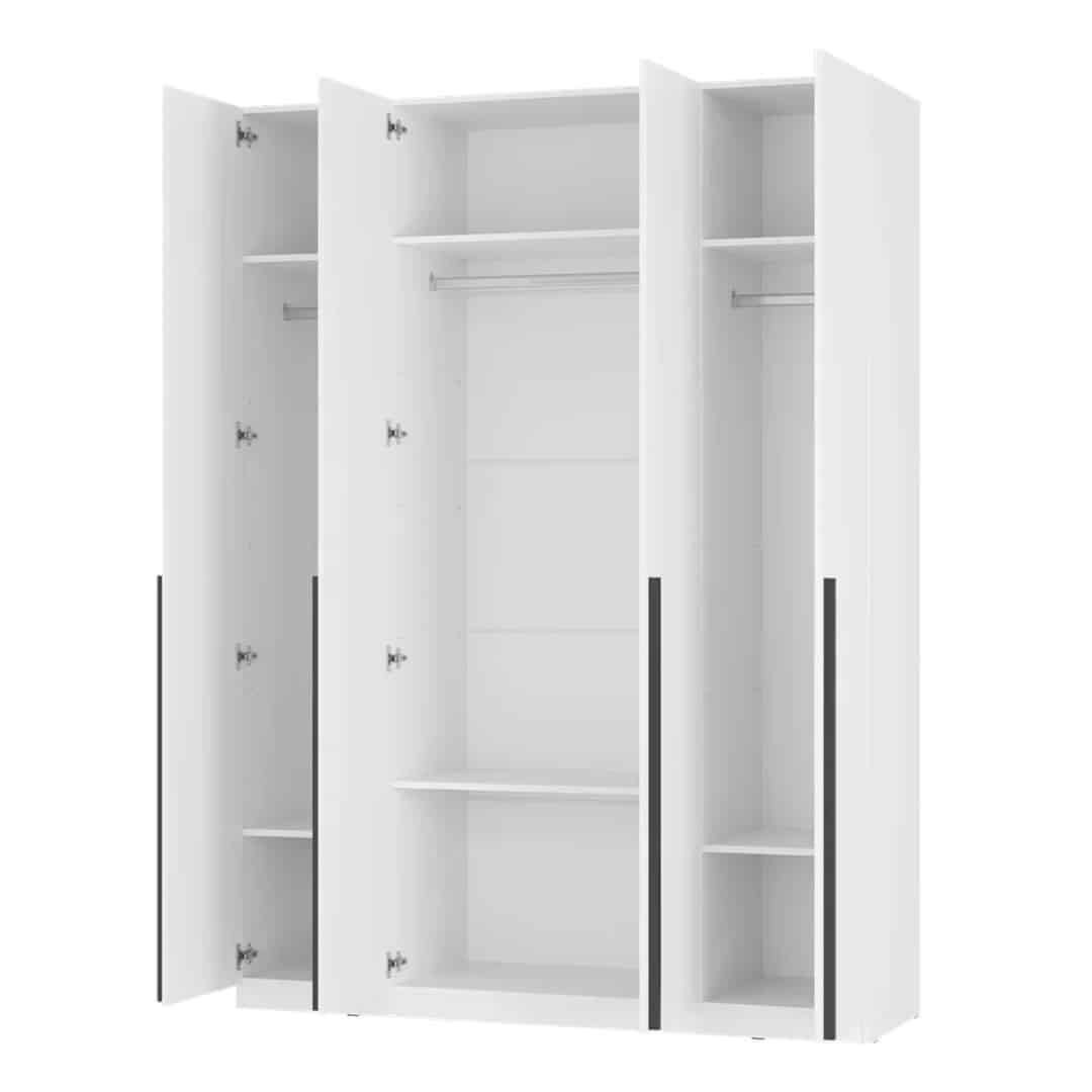 Характеристики: двери — распашные количество дверей — 4 ширина — 160.0 см. высота — 205.0 см. глубина — 52.0 см. материал