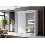 - Материал фасадов — ЛДСП Белый текстурный, Зеркало с фацетом, стекло Лакобель белое с фацетом.