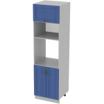 Шкаф предназначен для установки встраиваемого духового шкафа и микроволновой печи. Вместо духового шкафа можно установить кухонный комбайн или мультиварку. За открывающимися фасадами предусмотрено место для хранения кухонной утвари.