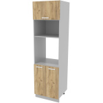Шкаф предназначен для установки встраиваемого духового шкафа и микроволновой печи. Вместо духового шкафа можно установить кухонный комбайн или мультиварку. За открывающимися фасадами предусмотрено место для хранения кухонной утвари.