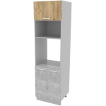 Шкаф предназначен для установки встраиваемого духового шкафа и микроволновой печи. Вместо духового шкафа можно установить кухонный комбайн или мультиварку. За открывающимися фасадами предусмотрено место для хранения кухонной утвари.