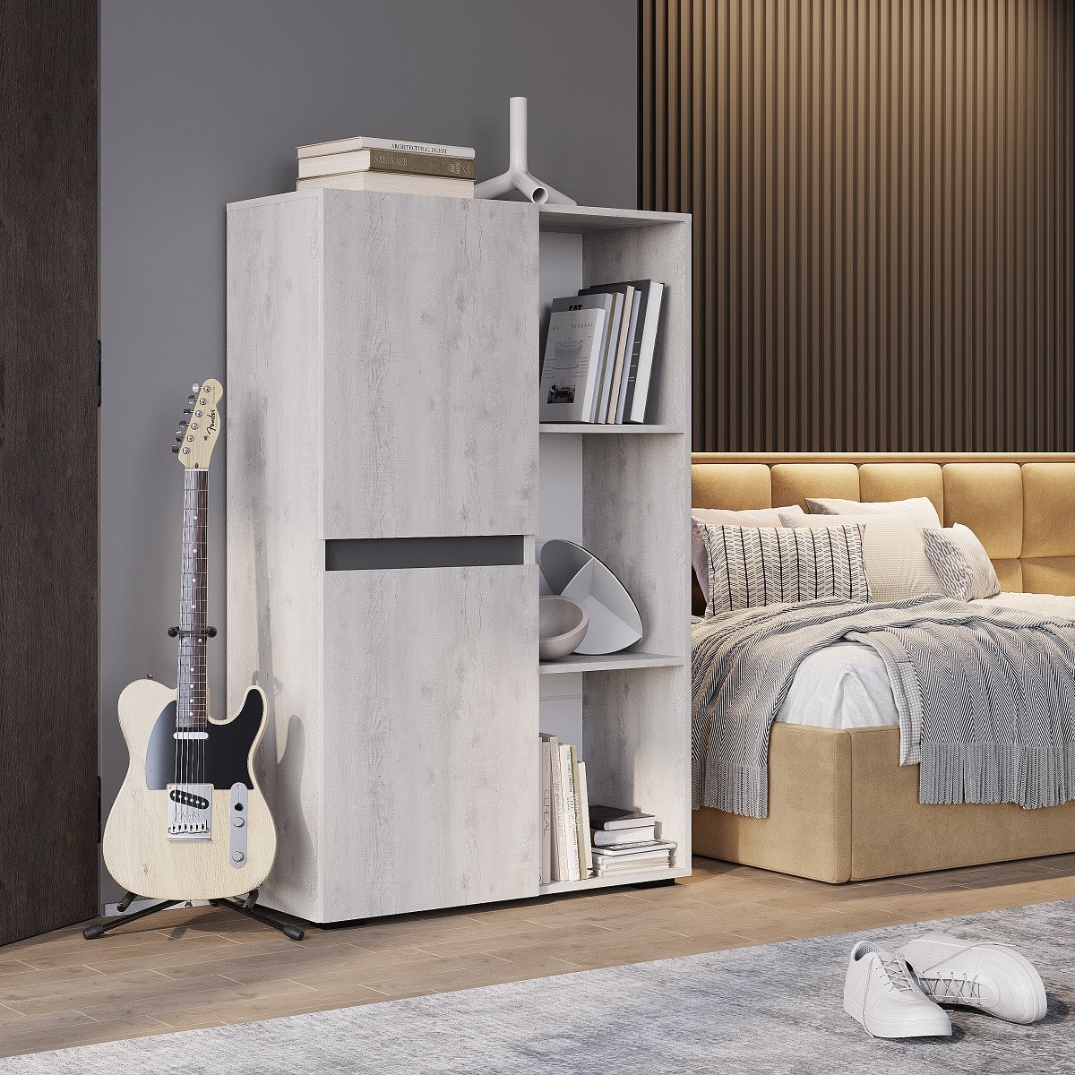 Шкаф-стеллаж Мрия ШК-16 Бетон пайн светлый — Графит