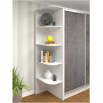 Универсальный приставной стеллаж КМ32 глубиной 67 см. позволяет разместить вещи первой необходимости в быстром доступе на 4-х открытых полках. А также может выступать местом для демонстрации фотографий и элементов декора.