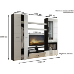 Характеристики: Ширина: 300.0 см. Высота: 210.0 см. Глубина: 50.0 см. Ниша под ТВ: 160.0 х 90.0 см. (Ш х В)