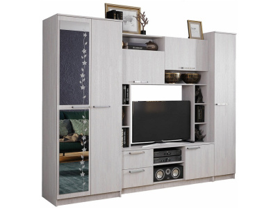 Гостиную «Флора» можно назвать настоящим символом утонченности и элегантности. Изделие обладает лаконичным стилем и сможет сочетаться со множеством современных интерьеров. Вы сможете разместить все необходимые вещи, включая аудио- и видеотехнику. Уникальной особенностью данной гостиной является зеркало на фасаде шкафа.