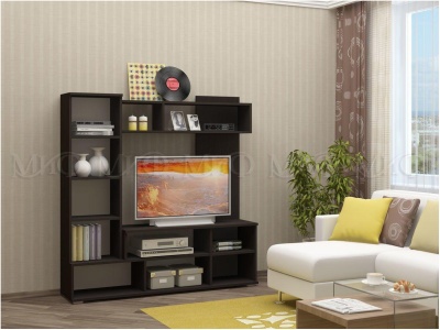 Миниатюрная стенка «Мини» в неповторимом стиле, с местом под большой телевизор. Она вместит в себя все самое необходимое. Современное удобное решение для маленькой гостиной или спальной комнаты.