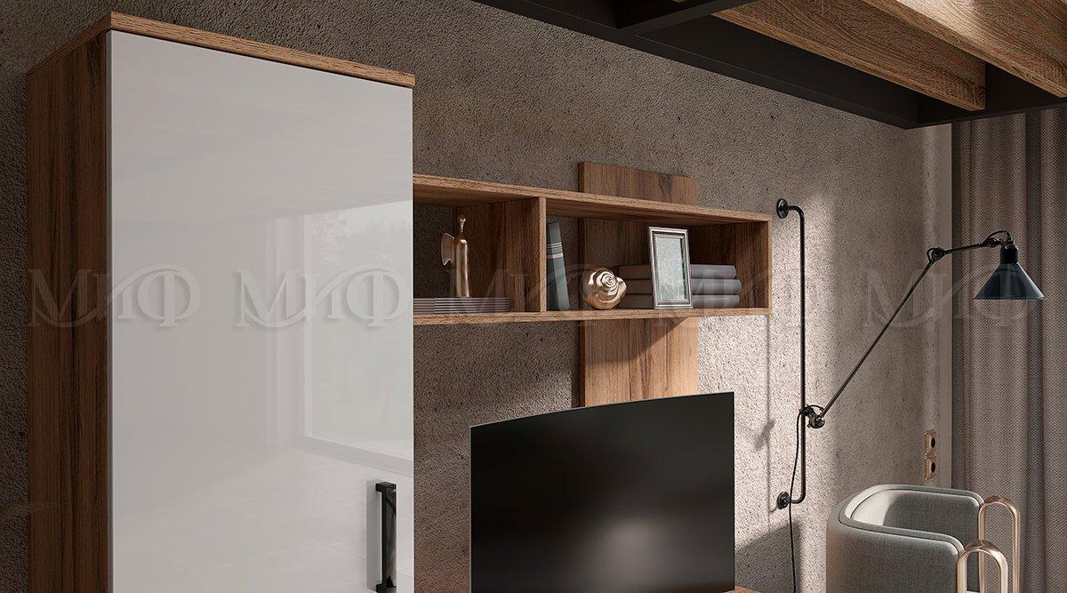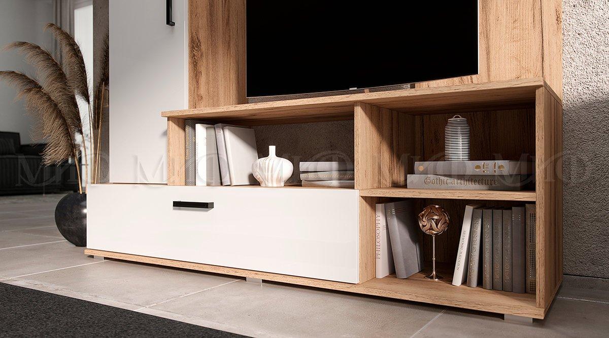 Миниатюрная стенка «Мини» в неповторимом стиле, с местом под большой телевизор. Она вместит в себя все самое необходимое. Современное удобное решение для маленькой гостиной или спальной комнаты.