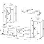 Характеристики: Ширина: 2400 мм. Высота: 2132 мм. Глубина: 314 мм. Размер тумбы под ТВ: Ш- 2400 В- 400 Г-314 мм.