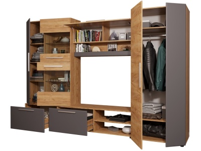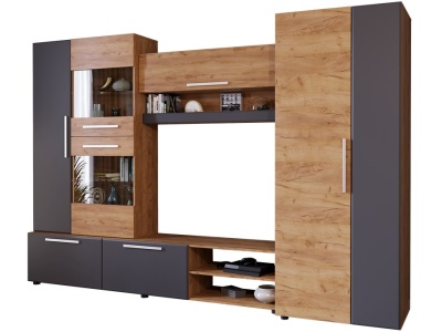Главная » Магазин » Стенка для гостиной Сафари Дуб крафт золотой — Графит софт