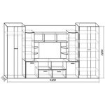 Шикарная, современная и многофункциональная гостиная. В оформлении фасадов использован пескоструйный рисунок на зеркалах. Витрины с тонированными стеклами.