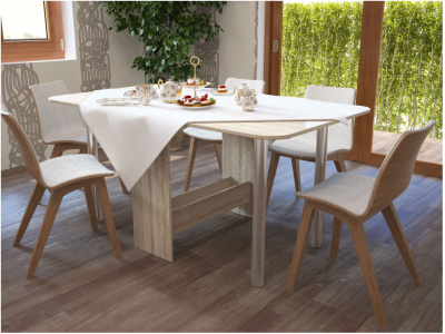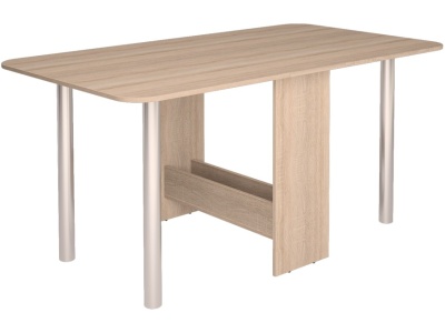 Стол-книга с двумя металлическими опорами с каждой стороны со скругленными углами. В обычные дни стол-книга не занимает много места. В праздники же за такими столом соберется большая компания родных и друзей, и вам не придется ломать голову, куда всех рассадить.