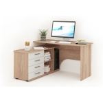 На широкой столешнице легко поместится монитор, клавиатура и документы, на угловой части можно разместить оргтехнику. В столе выделено место для системного блока и для письменных принадлежностей. Его можно укомплектовать надставкой с множеством полок для папок, книг и декора.