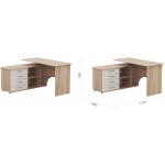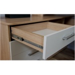 В столах системы Гарвард мягкие, удобные для опирающихся рук края, с кромкой в 2мм, а также, скруглённые углы столешницы. Корпус выполнен в теплом древесном цвете светлого дуба с приятной на ощупь фактурой, фасады — белые матовые. Нейтральные оттенки мебели позволяют легко вписаться уже в готовый интерьер любого помещения.