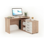 На широкой столешнице легко поместится монитор, клавиатура и документы, на угловой части можно разместить оргтехнику. В столе выделено место для системного блока и для письменных принадлежностей. Его можно укомплектовать надставкой с множеством полок для папок, книг и декора.