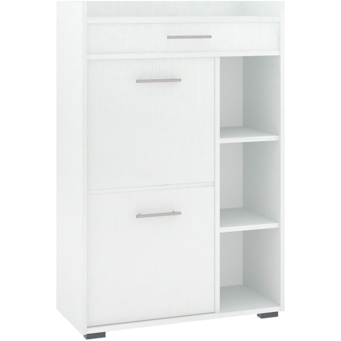Тумба для обуви «ЛАРА ТП4» изготовлена из ЛДСП 16 мм. Имеет в своем составе открытые и закрыте полки, а также 1 выдвижной ящик.