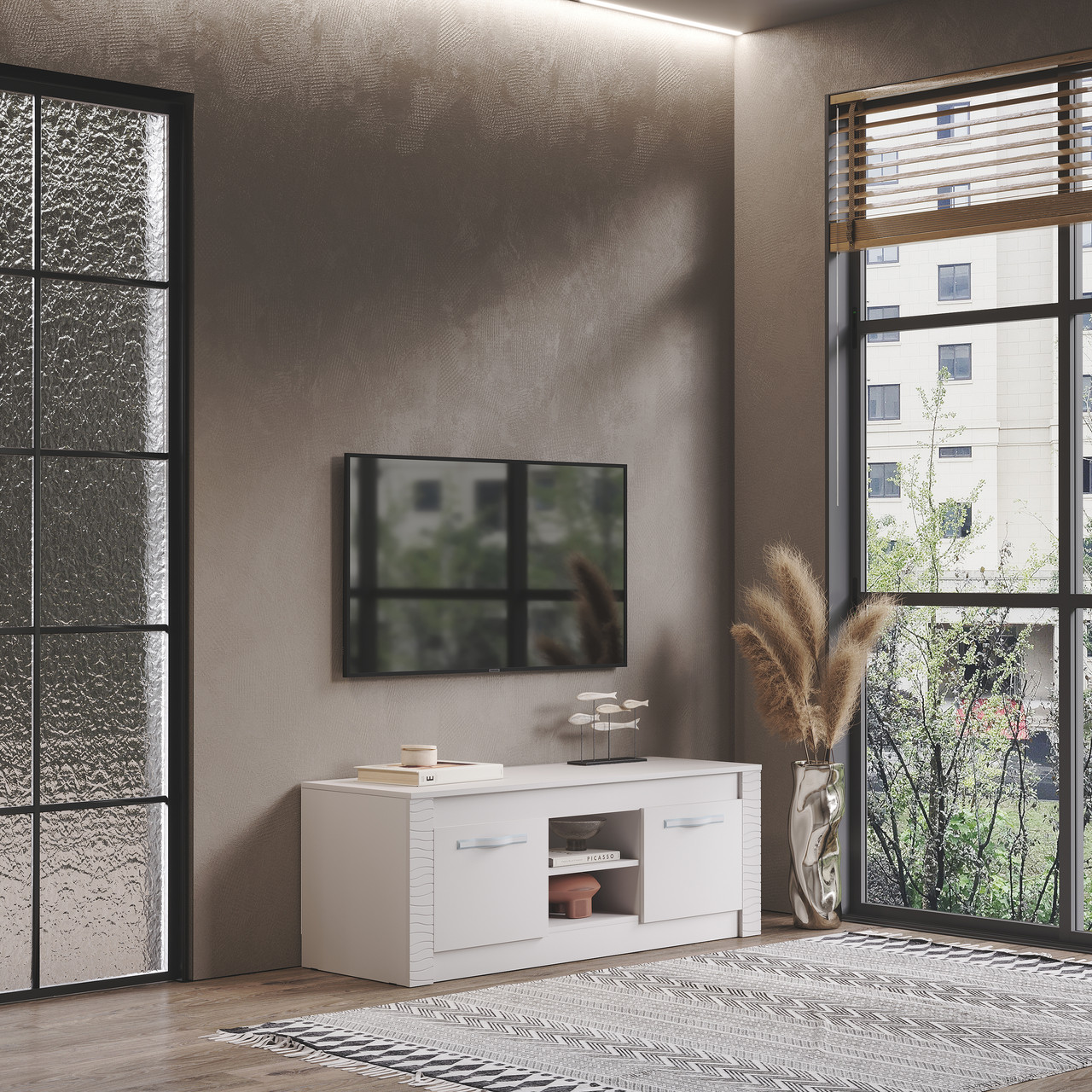 Тумба под телевизор Токио Белый текстурный