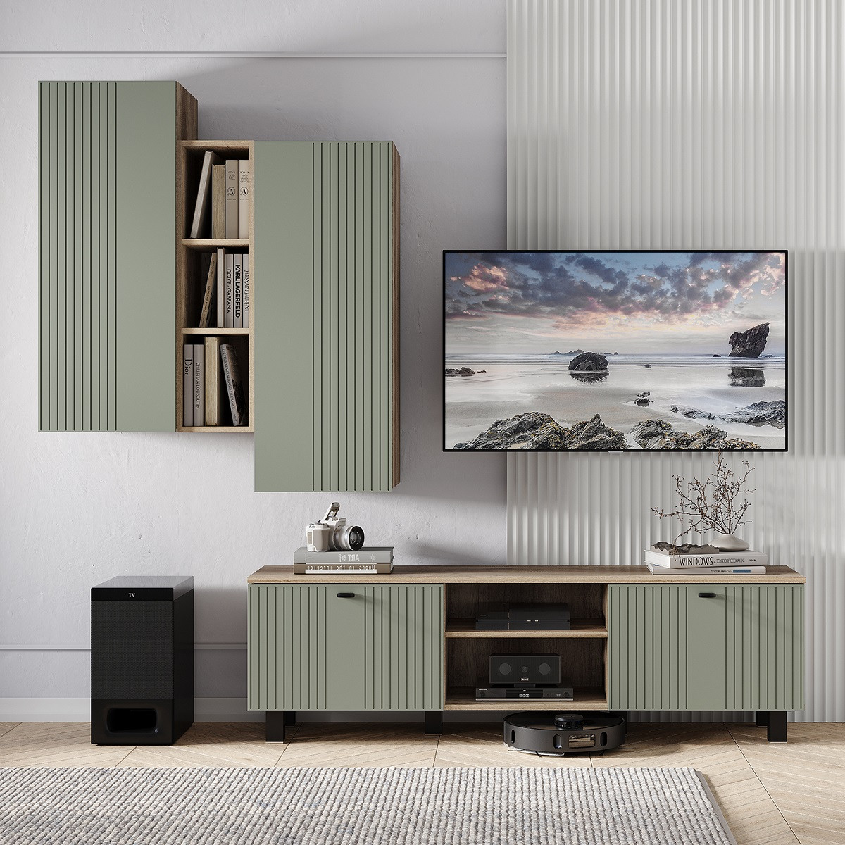 Тумба под ТВ Олива ТБ-09 Эвкалипт софт — Дуб каньон