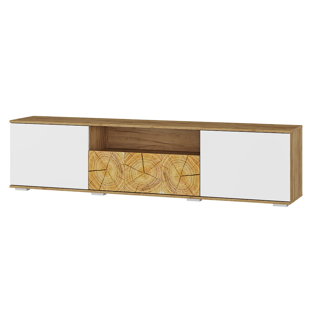 Тумба под ТВ Тиволи ТБ-06 Дуб Каньон — Белый + Фотопечать Текстура дерева