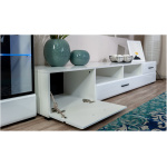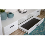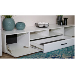 Тумба ТВ Йорк 2д1ящ оснащена всем необходимым для удобства использования: выдвижными ящиками на телескопических направляющих, открытыми и закрытыми полками для медиа техники, пультов и других необходимых вещей. Выполнена из экологически безопасных материалов.