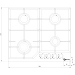 Характеристики: Тип панели — газовая варочная поверхность Количество конфорок — 4 Установка — встраиваемая, независимая Управление — фронтальное Тип управления